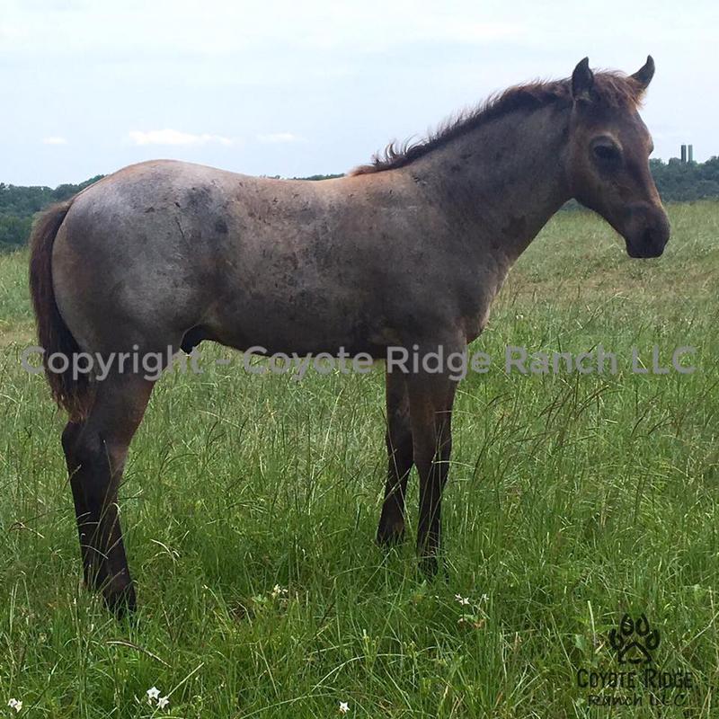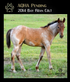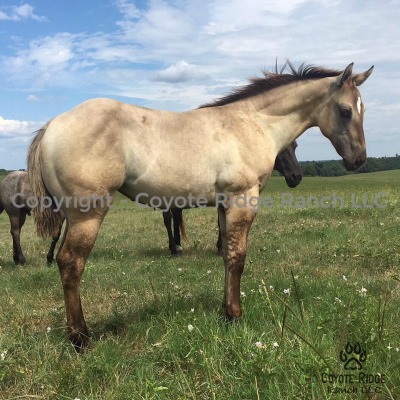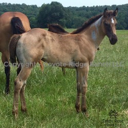 Another one sired by AQHA Open performance point earning stallion in dally heeling, this cross has consistently produced shapely, fleet footed, eye catching foals. We kept a full brother to this colt for ranch work. This colt is 5 panel N/N by parents' tests.