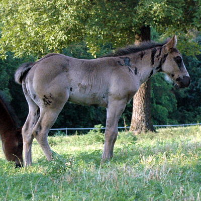 Coyote Ridge stands two grullo roan, Joe Hancock, linebred Blue Valentine stallions.  We offer a select group of foals for sale each year sired by these stallions..  We encourage prospective buyers to visit these stallions in person to appreciate their pleasant dispositions, sound structure and athletic ability.  Breeding to outside mares by private treaty.